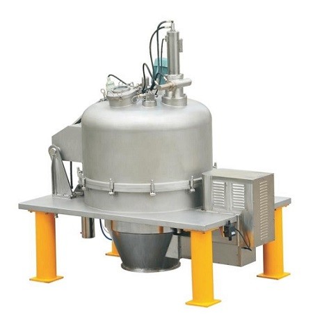 Apply to separating the suspension containing particles, but also fibers, especially the highly sticky, containing micro particles, poisonous and flammable materials, like antibiotics, vitamins, and minerals, salts, gourmet powders, foodstuff additives, amylum, sugar, chemical flavors, thiamin, plasters, Glauber's salt, bluestone, potassium chloride, borax, dyestuffs, pigment, resin, pesticides, and environmental protection. The centrifuge is highly automated, has large capacity and can be remote-controlled.